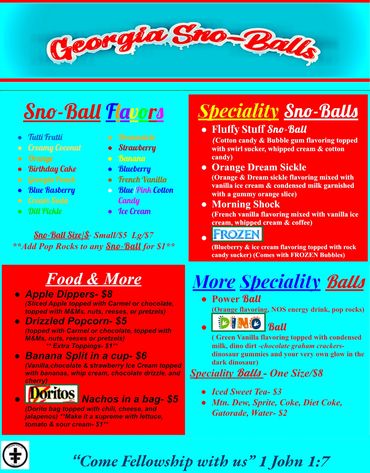 Our menu offers a wide variety of sweet & salty treats from a New Orleans style sno ball, to an easier on the way of eating